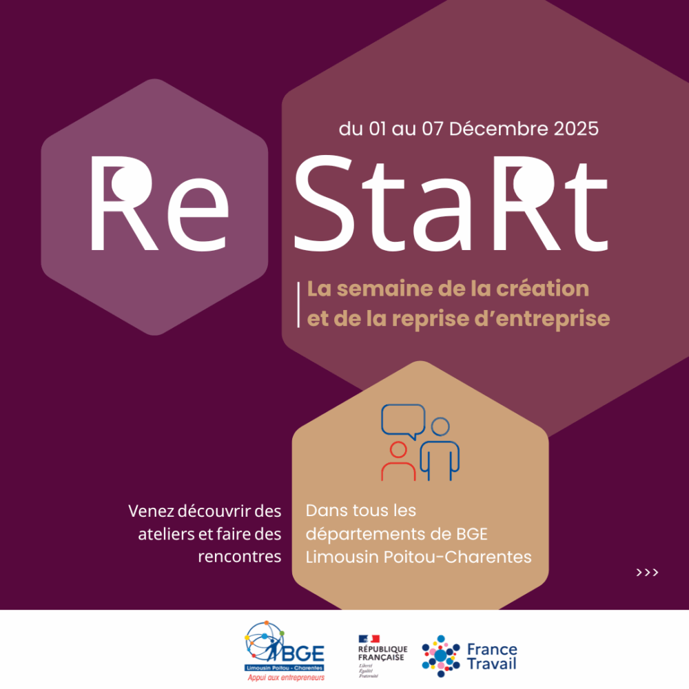 Restart est un événement organisé par France Travail qui se déroule sur une semaine et qui a pour thème la semaine de la création et de la reprise d’entreprise.